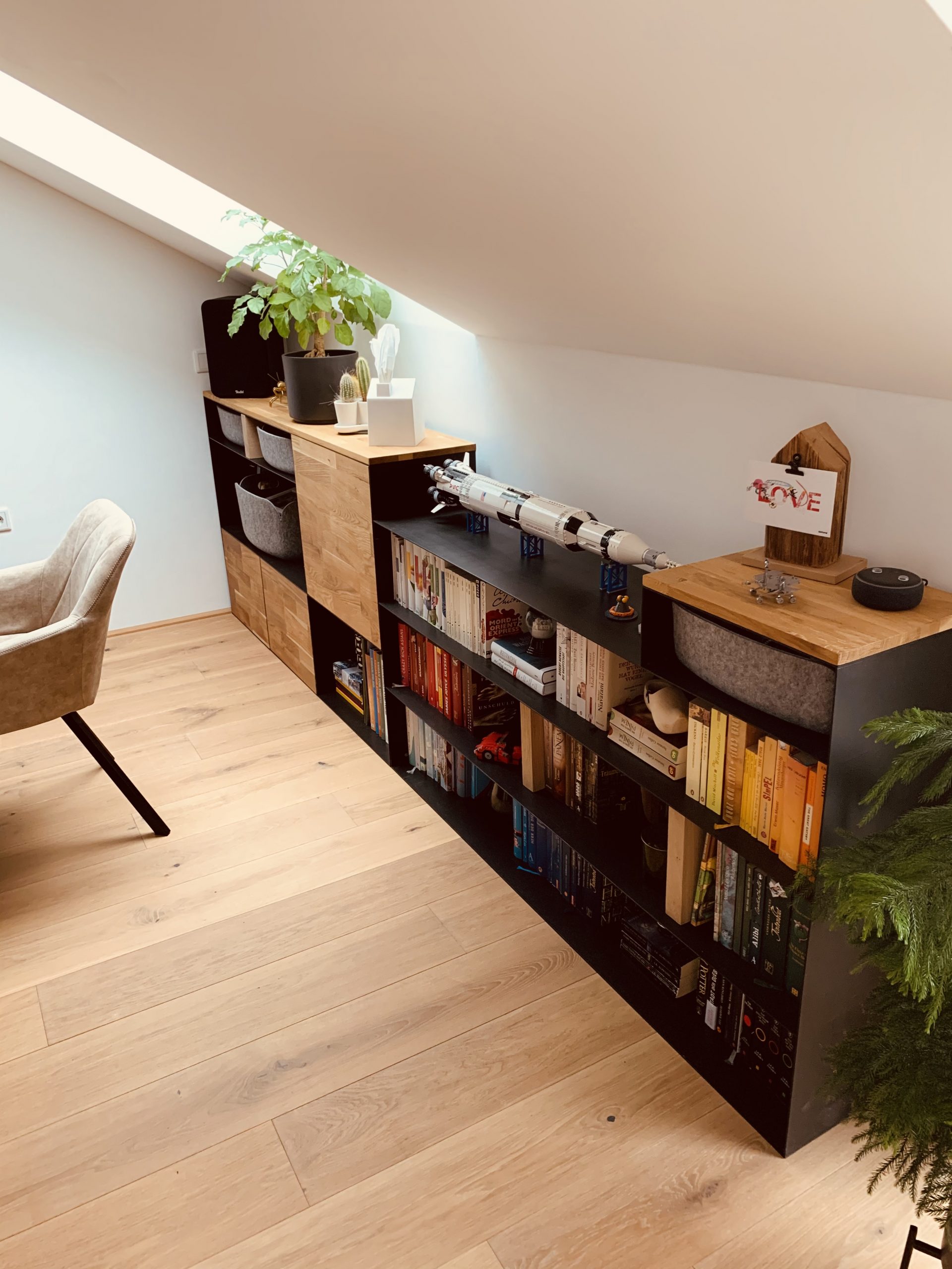 Schwarzer Stahl und warme massive Eiche. Eine unschlagbare Kombination. Vom Design bis zum Aufbau, alles aus einer Hand.