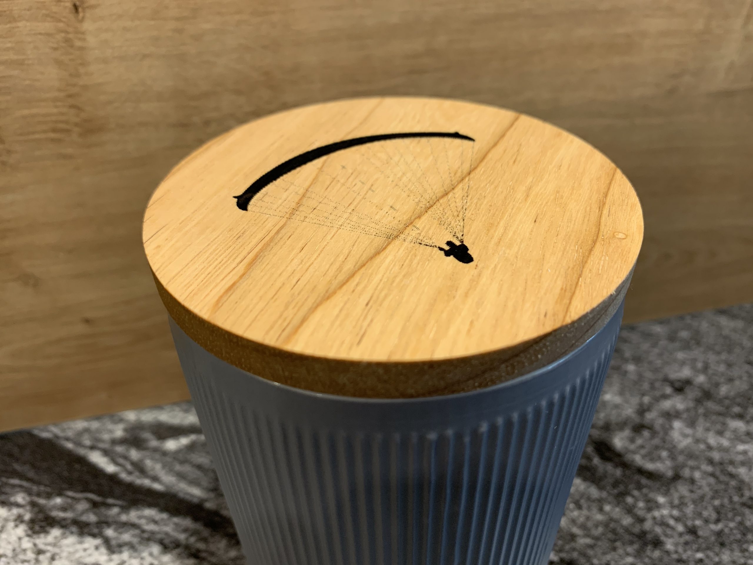 Hochwertige Keramikvorratsdose mit personalisiertem Deckel aus Eiche. Die ideale Dose für Kaffee oder Kakao.