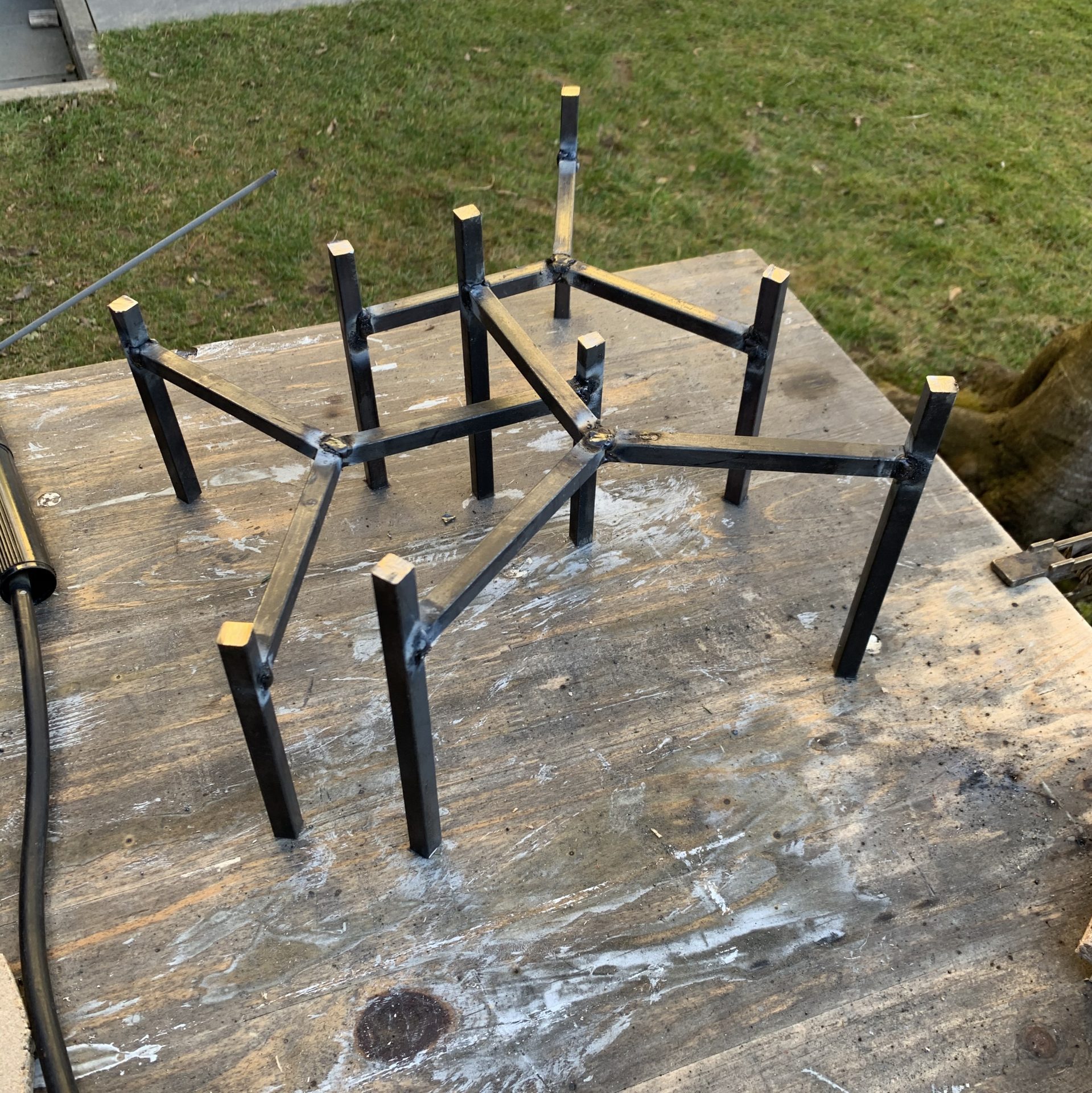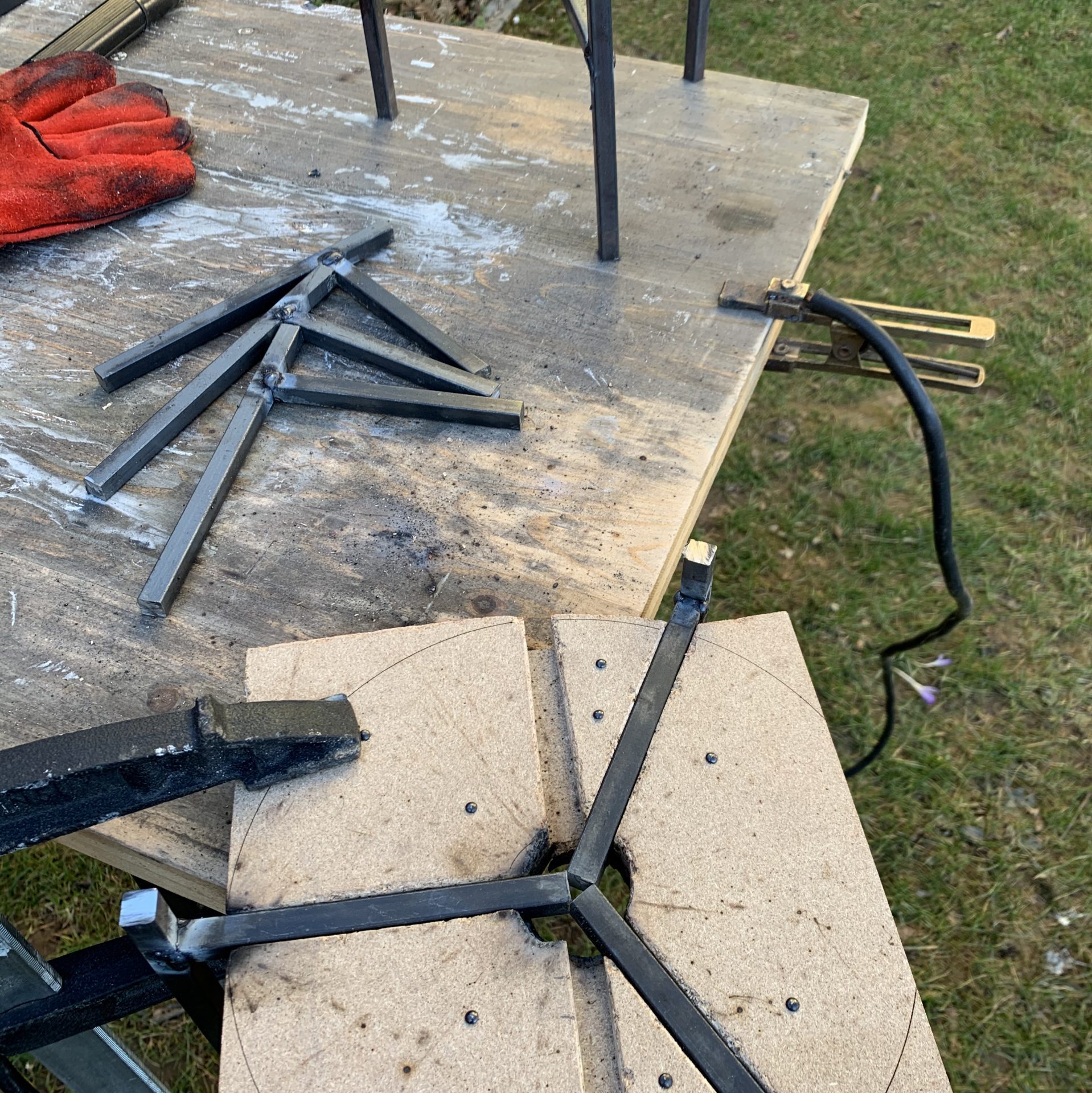 Mit unserer selbst entwickelten Schablone können wir die drei Streben perfekt im 120° Winkel ausrichten.